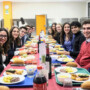 Tras la celebración, los y las estudiantes se trasladaron al comedor, donde en apenas unos minutos se formó una larga cola que dejaba claro que nadie quería perderse la cena de Navidad. Entre risas y conversaciones, se fueron sentando y tomando asiento, luciendo sus mejores galas y celebrando, en muchos casos, el final de los exámenes y el merecido descanso.